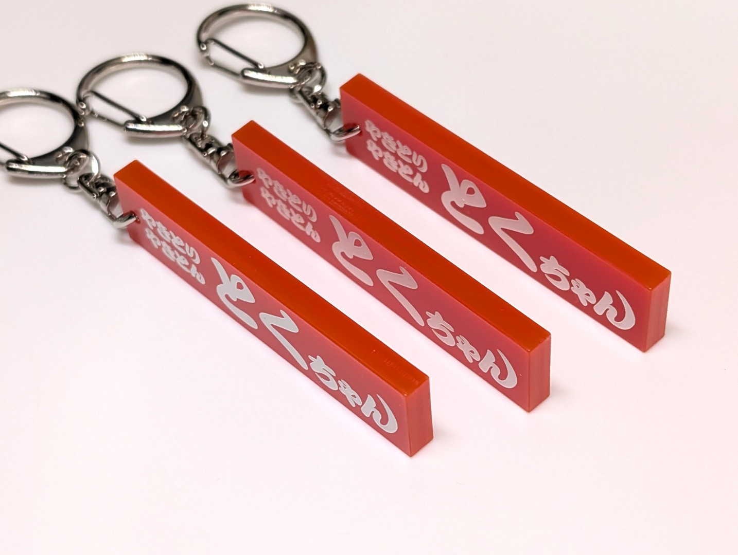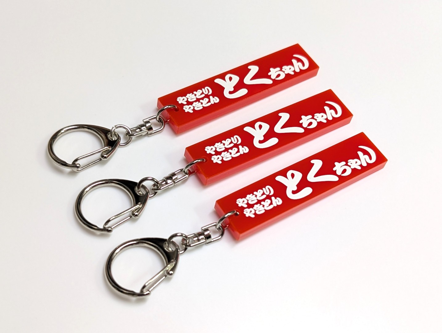 東京都中野区落合駅徒歩2分の場所にございます、焼き鳥屋とくちゃん様20周年キーホルダーのご注文を頂きました。 お店の看板をそのままキーホルダーとして製作。 表示加工は塗料仕上げ、彫刻加工後凹み部分に塗料を流し込んで製作しています。 |